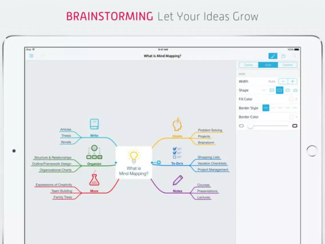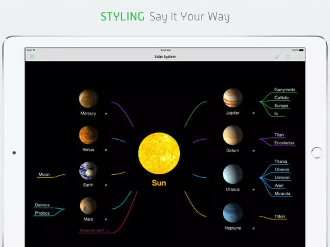 Highlight your thoughts with style and let your mind map auto-magically arrange itself, so nothing gets in your way.