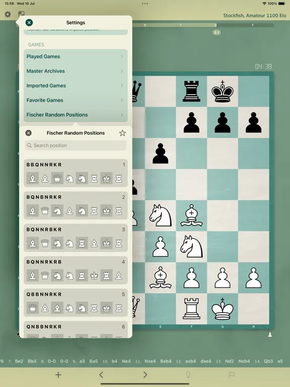 - Fischer Random Positions Manager: Manage and set up Fischer Random positions with ease.