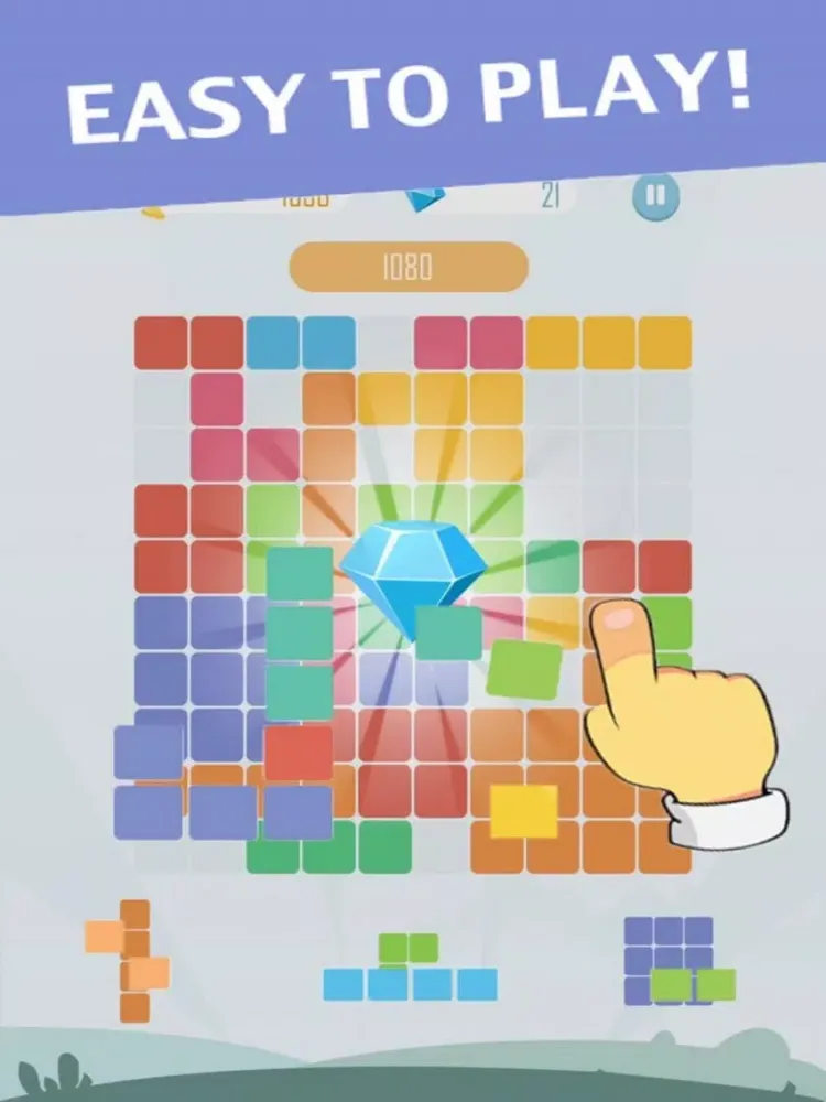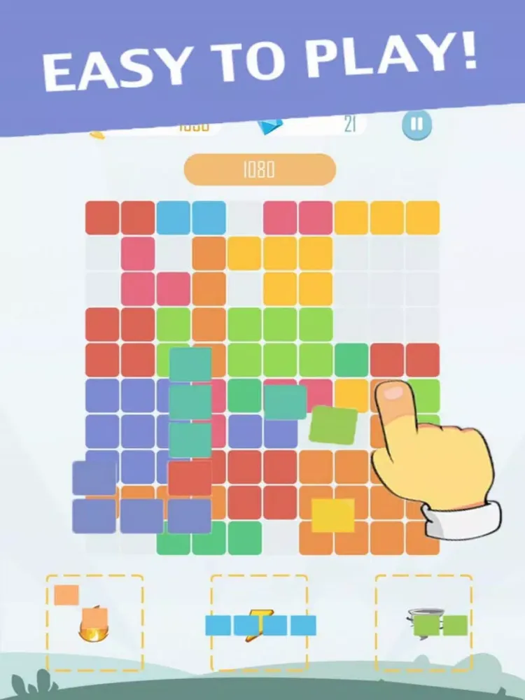 Easy to play and pleasurable game for all age. Magic Finger Block is a simple puzzle game of matching and eliminating horizontal and/or vertical lines. Drag the newly generated blocks and match horizontal and/or vertical lines so that the screen does not get filled up with blocks. You can play games for free!