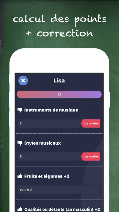 (Attention lors de la partie si un pouce baissé apparait à coté de la catégorie c'est que ta réponse n'est pas validée et qu'elle n'est pas dans notre base de données de mots)