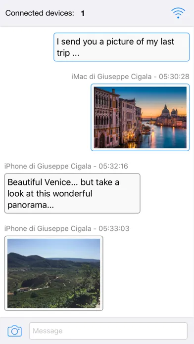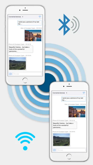 Send messages and images to nearby devices via Bluetooth and Wi-Fi.