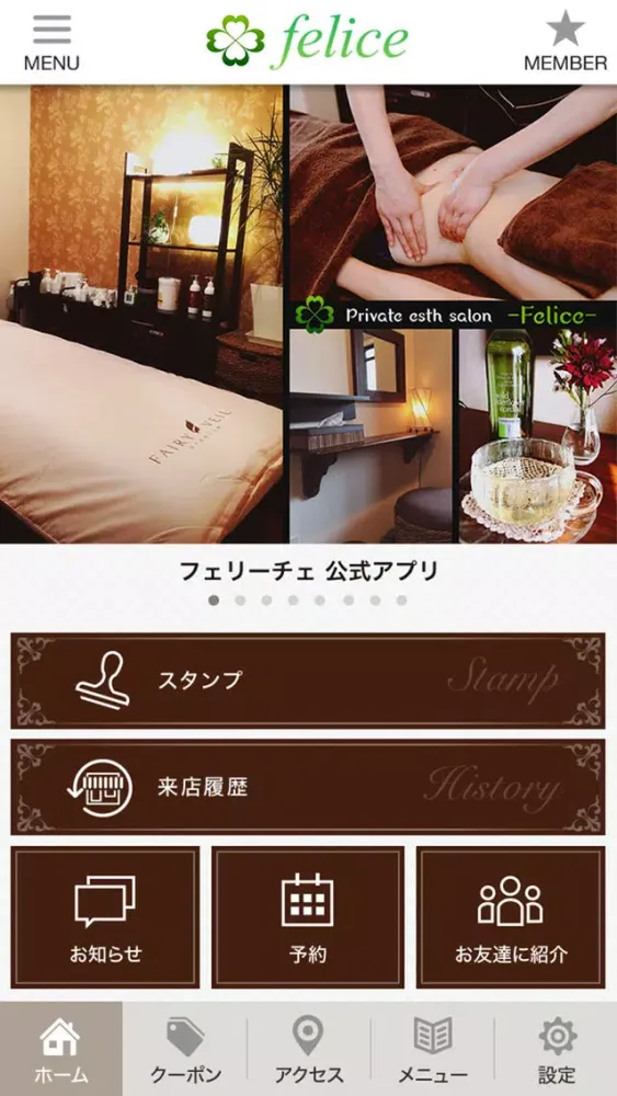エステサロンフェリーチェの公式アプリをリリースしました。