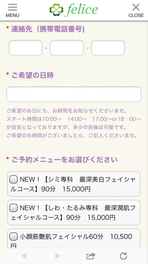 木津川市 エステサロン フェリーチェ 公式アプリ FAQ