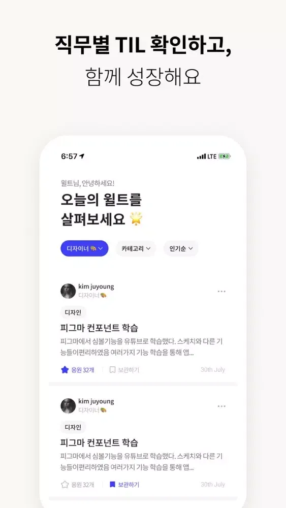 • 서로 응원도 나누고, 마음에 드는 TIL은 보관도 가능해요.