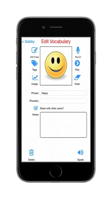▪ Each vocabulary item has an image, phrase, phonetic phrase, tags, and comments.