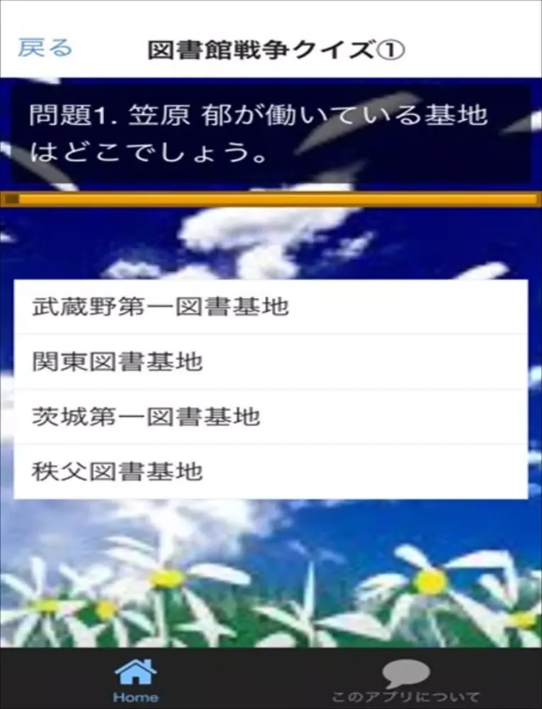 あの人気の図書館戦争がついにクイズアプリで登場!!このアプリをすることで、もう一度違った視点で図書館戦争を楽しむことができますよ(^^図書館戦争ファンから図書館戦争好きまで楽しめるアプリです。今すぐチャレンジ!!
