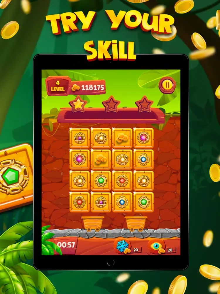 A game for attention and memory training. Develop your abilities by playing, memorize the cards and try to guess their location after shuffling. If you open the same pairs of cards with diamonds, then you can fill the wagons with diamonds and quickly pass the level of the game. The more accurate the answers, the fewer attempts, the more stars you get. Be the best! Show the best result in the game, worthy of the title of the most attentive player!