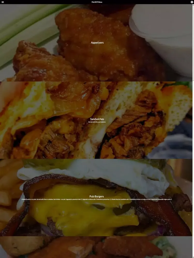 Pub 819 is a full bar and restaurant with 90+ whiskeys, crafted cocktails, 32 craft beer taps & menus featuring unique burgers & more.