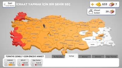 Get ready for the most exciting election game yet! Choose your favorite party or create your own custom party with your own character. Travel across Turkey to attend rallies and events, and make appearances on TV to attract voters and gain their support.