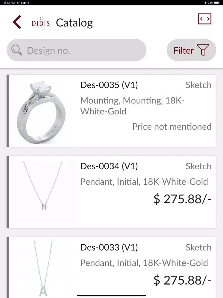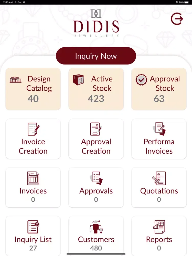 Didi's Jewellery application designed for managing jewellery and It is useful for jewellers. Through this app jewellers can manage stock-list, invoices, manage approval and inquiry.