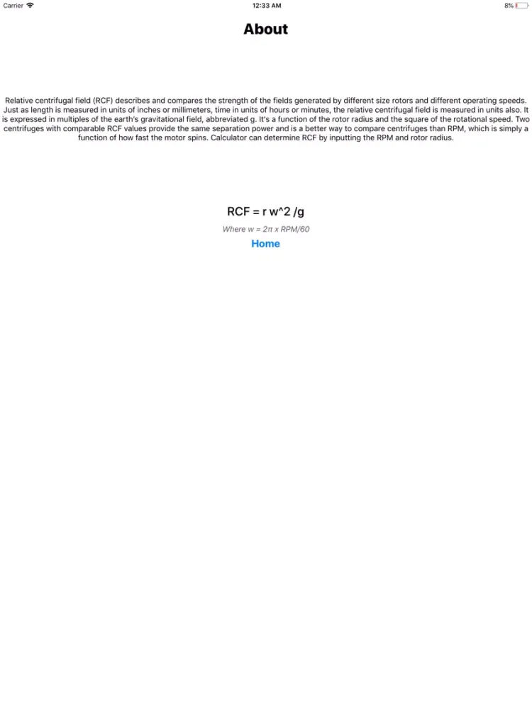 Relative centrifugal field (RCF) describes and compares the strength of the fields generated by different size rotors and different operating speeds. Just as length is measured in units of inches or millimeters, time in units of hours or minutes, the relative centrifugal field is measured in units also. It is expressed in multiples of the earth’s gravitational field, abbreviated g.