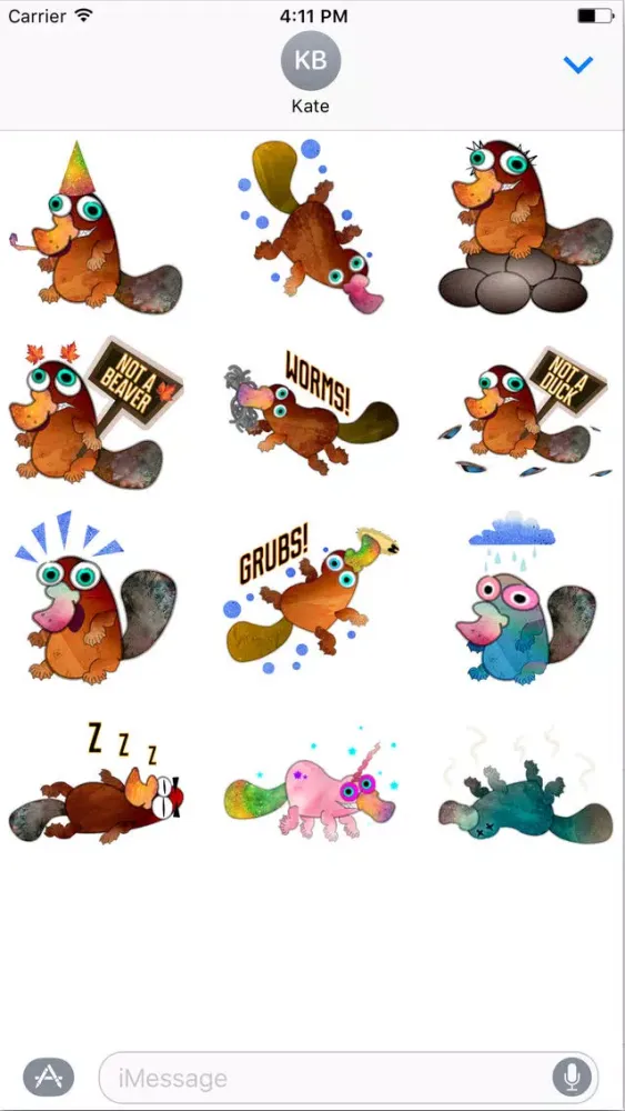 A dozen iMessage stickers expressed by the strangest mammal that ever walked [or waddled] this earth! It's not beaver, it's not a duck, it's a platypus!