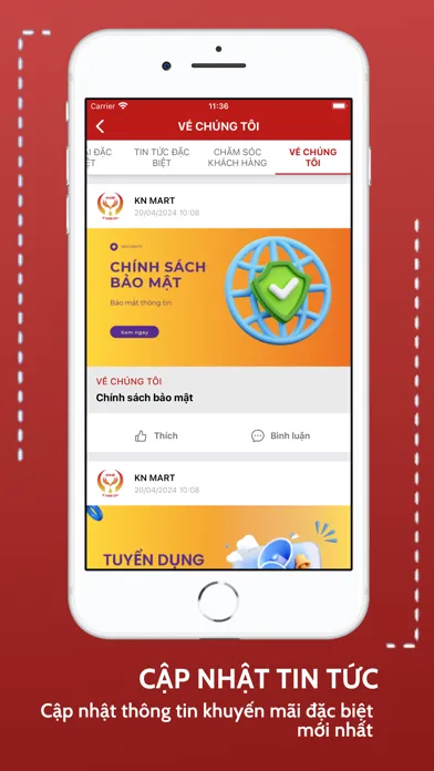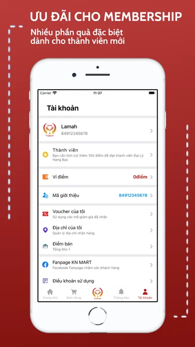 Dưới đây là một số tính năng nổi bật của ứng dụng KN MART: