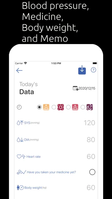 -Record blood pressure, weight, and medication at the timing of 4 times a day