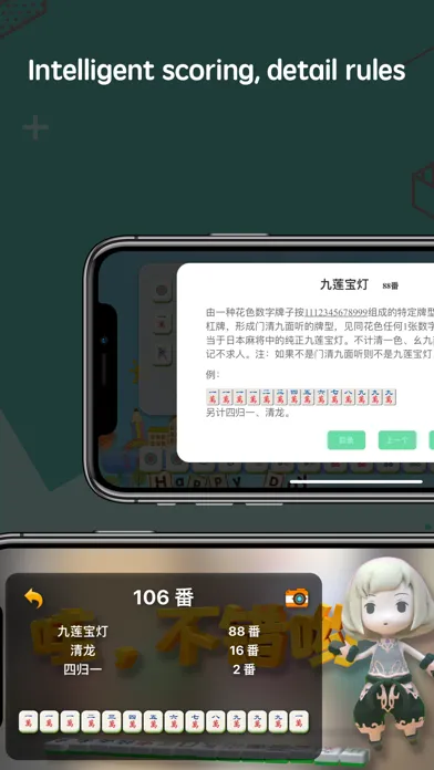 This App is so smart that it can scan mahjong tiles by the phone camera to know current tiles in seconds, and it can use its built-in mahjong AI to analyze which tile to discard makes a better strategy, what waiting tiles are if it's waiting after discard. People can learn from AI to improve his mahjong skills.