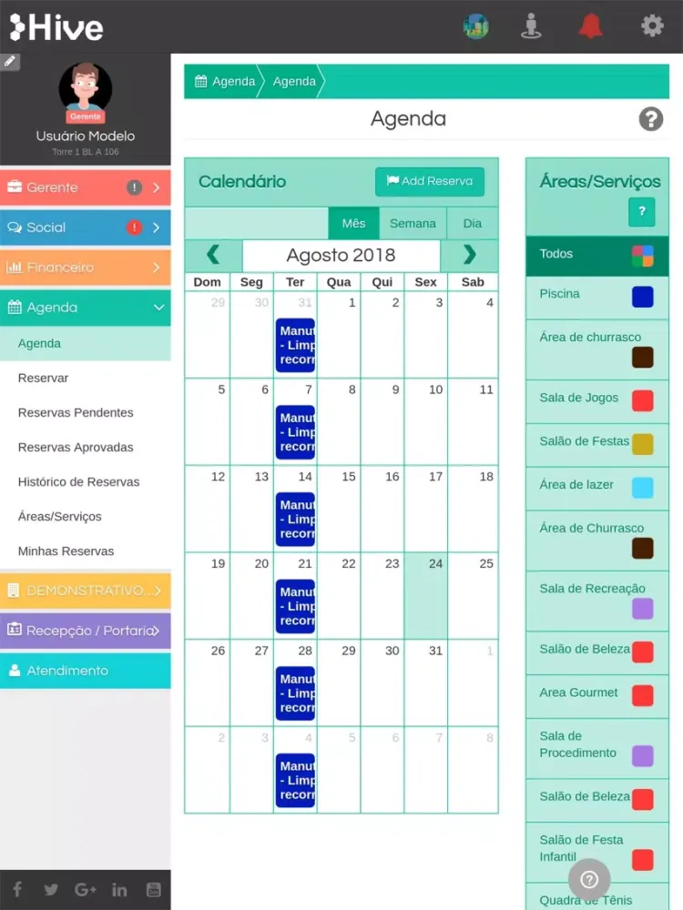 - Agendar área comum (histórico).