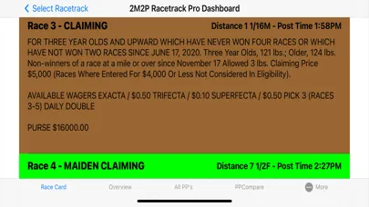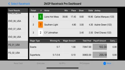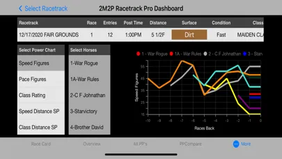 2M2P Racetrack Pro offers interactive and customizable past performances, powerful charts and graphs, and algorithm picks for all thoroughbred racetracks running in North America.