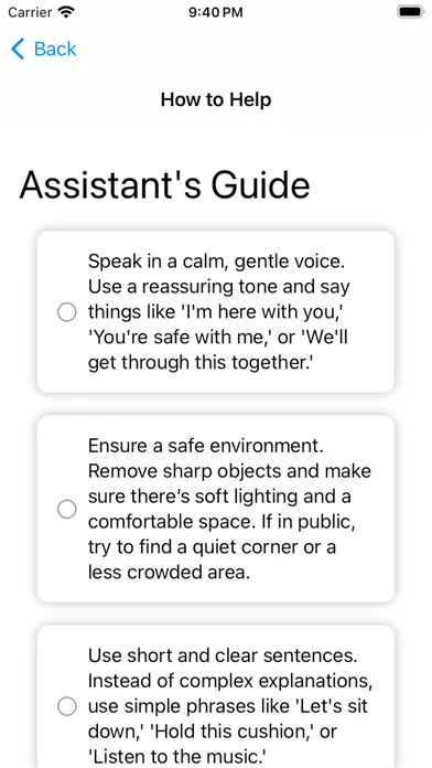 • Assistants Section: A comprehensive guide for caretakers and assistants. Step-by-step, compassionate instructions on assisting individuals with autism during meltdowns, ensuring their safety, and providing comfort and understanding.