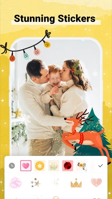 - A Powerful Material Store: 1000+ unique stickers, backgrounds and filters are well organized here for your options.