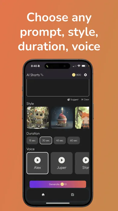 Unleash your imagination with limitless possibilities. Input any prompt, and watch as AI crafts a unique short tailored to your ideas. Whether it’s a funny skit, an inspirational message, or a product pitch, your prompts guide the creativity.