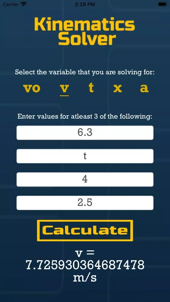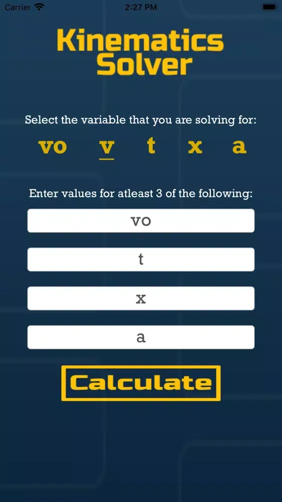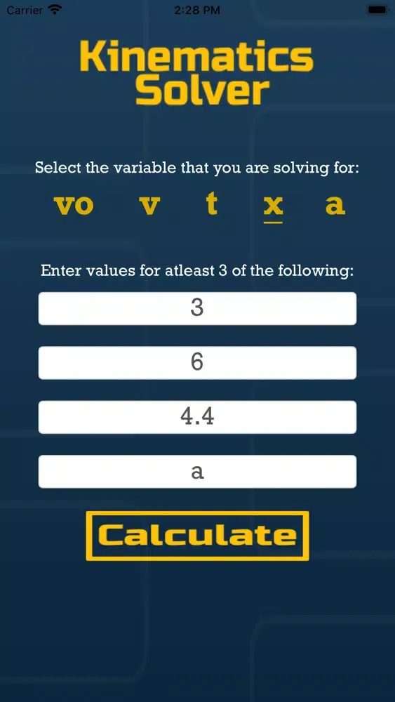 [Note] This app could theoretically be used to solve for motion in any direction. However, the variable X was chosen to represent distance as it seemed to occur most commonly throughout my experience taking physics.