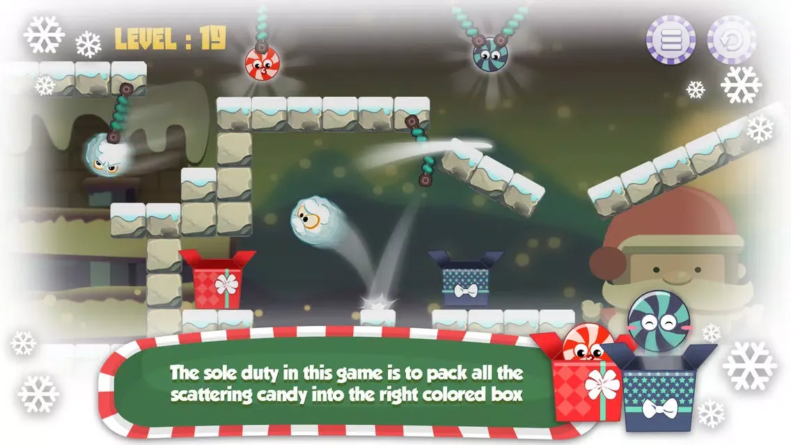 Christbox- Pack the gift is an interesting puzzle physics-based game. The sole duty in this game is to pack all the scattering candy into the right colored box. Although the game has a simple way of playing, it is sure that players are not easy to overcome all challenges. And, the key of Christbox- Pack the gift is that the right time as well as the exact estimate in any situation.