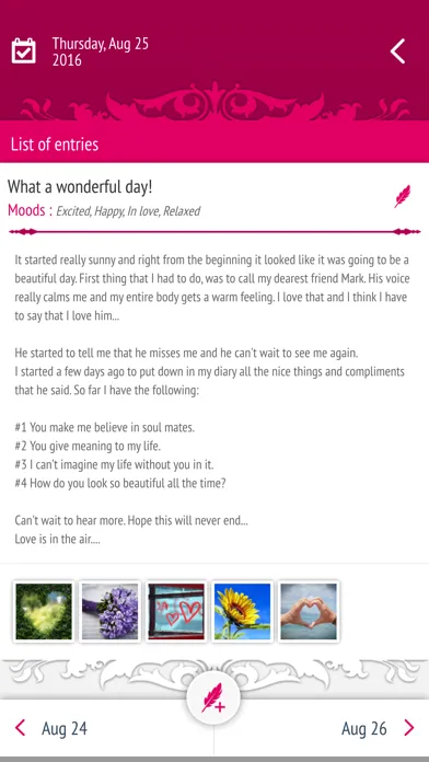 Either you want to keep your secret away from prying eyes, maybe a secret love story, or you just want to record your life's emotions as time passes, you now have a friend that listens to you without judging.
