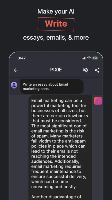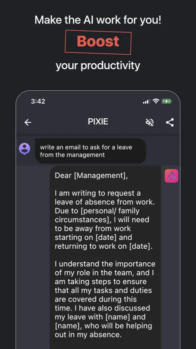Powered by the most advanced AI models, including Ada, Babbage, Curie, and of course Davinci, Pixie is the most powerful, capable, and fully optimized AI Chatbot assistant that can improve your work productivity and creativity and save you a lot of time.