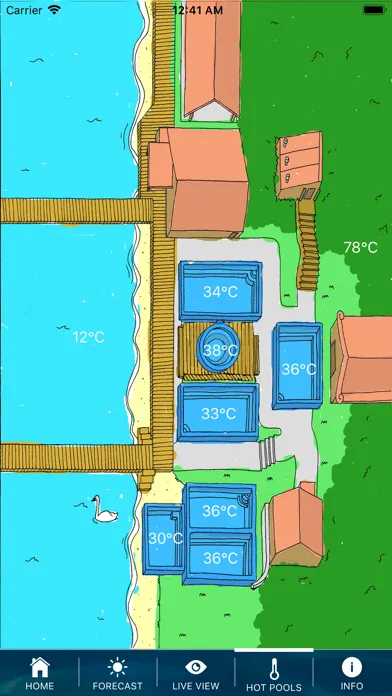 A simple intuitive mobile app displaying the hot pools temperatures, weather forecasts and a live view of Lake Rotoiti.