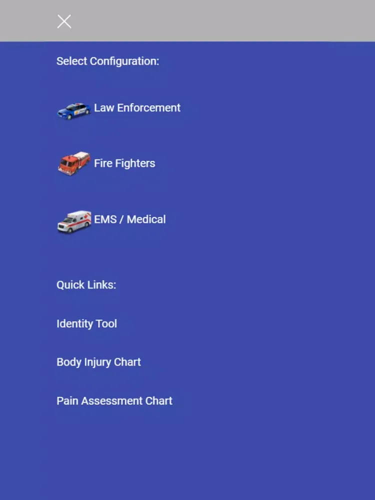 -separate easy to use picture Communication boards and interactive categories for law enforcement, firefighters, and EMS.