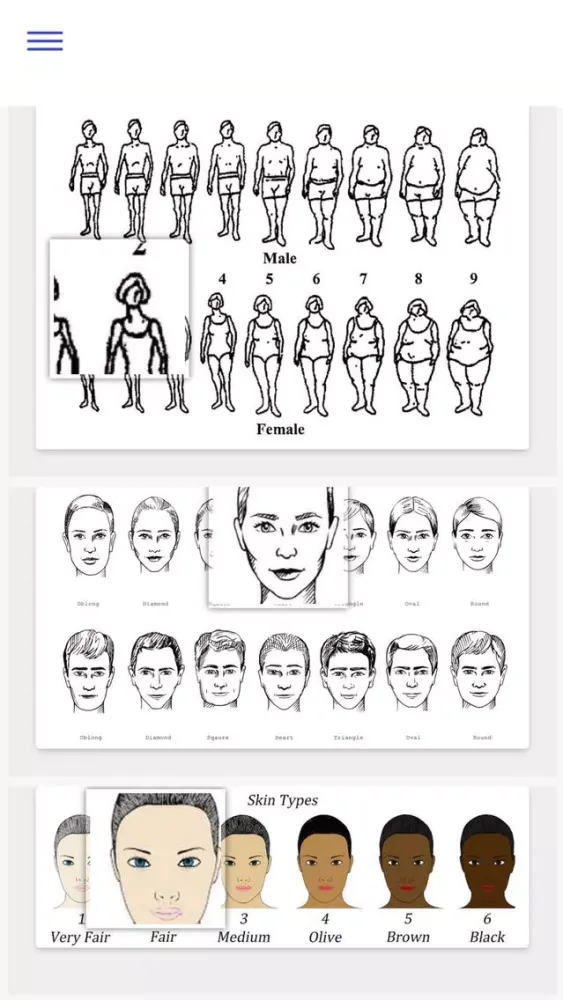 -interactive police sketch tool where an individual can pick from different facial features (eyes, ears, nose, mouth, etc), different hairstyles, different body types and size to give law-enforcement a description of the perpetrator that hurt them.