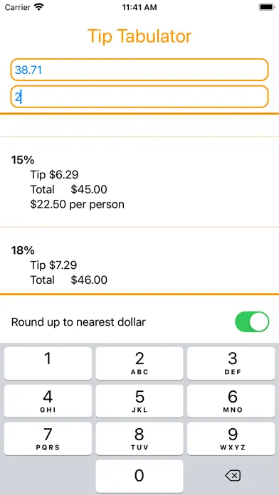 Tip Tabulator is a quick, no-nonsense calculator for tips. It offers quick entry and display of tip amounts in various common percentages, and can optionally round the tip to make the final bill an even dollar amount. It also allows entering the number of people in a party and the amount each would need to pay.