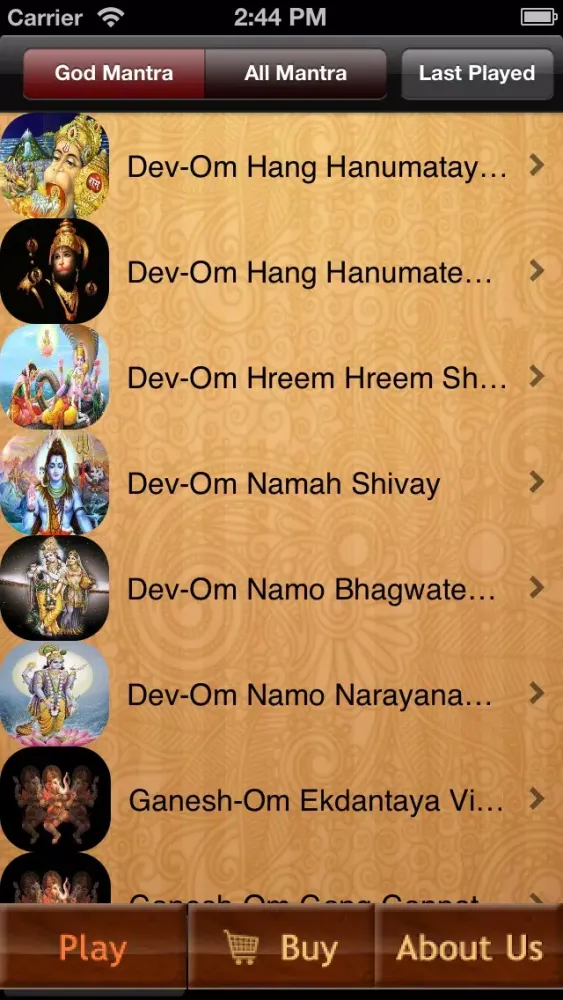 3. The Mantras have been categorized on various filter parameters so that it would be easy to select the mantra to be played.
