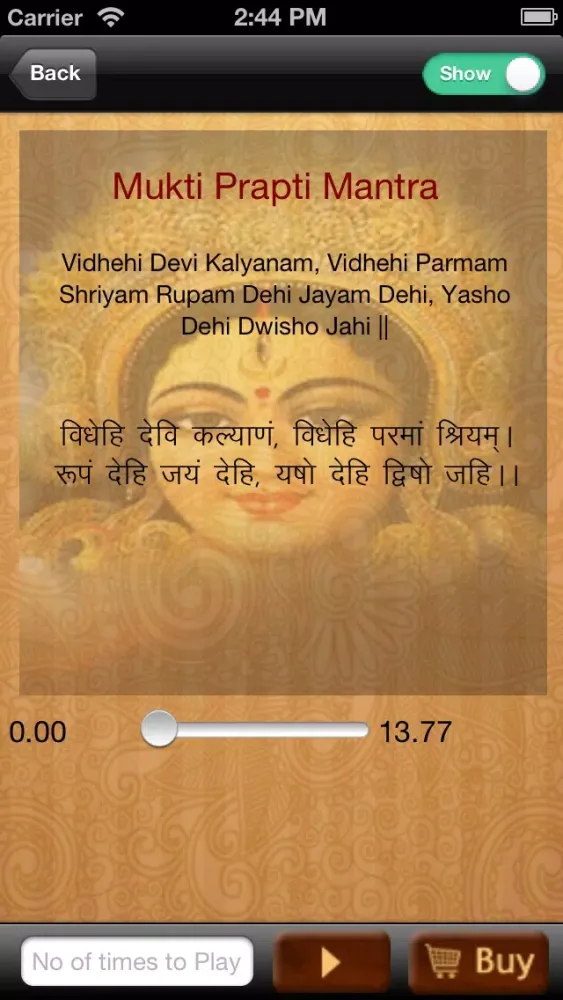 1. This app allow you to play or listen the holy mantras up to as number of times you want.