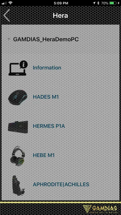 GAMDIAS HERA, a smart application can remotely control certain GAMDIAS gaming gears and furniture on your mobile devices. Including the following functions: