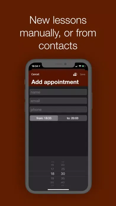 Set your default lesson duration in Settings, and save time by only having to add the lessons start time.