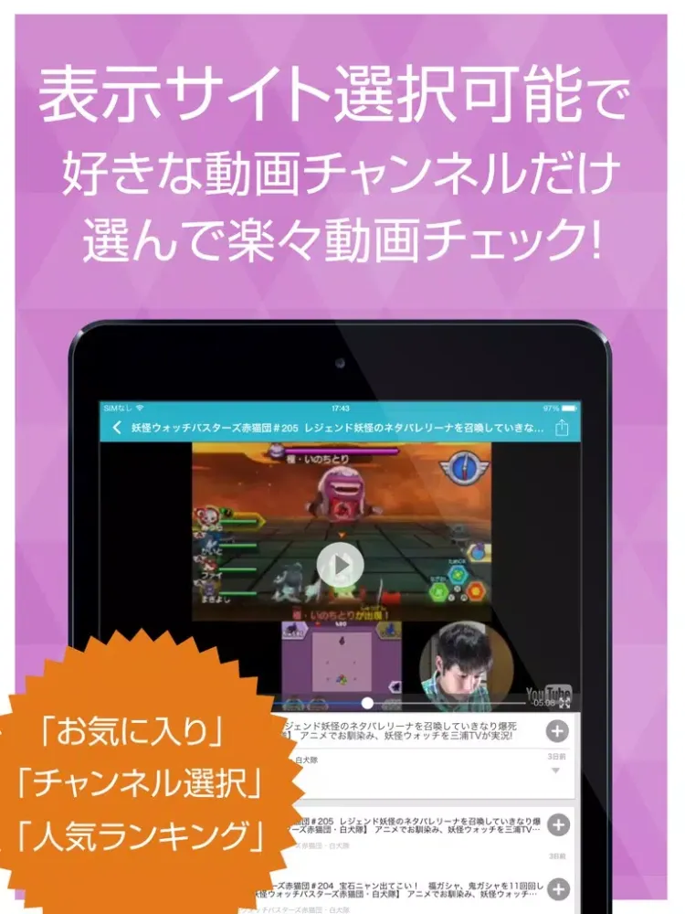 ・チャンネルリスト機能が搭載されており、好きなYOUTUBEのチャンネルだけをチェックできます。