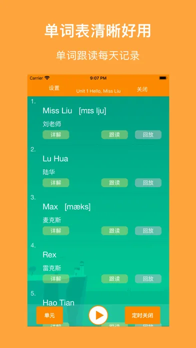 1、跟读模式:循环当页、循环单元、循环课本、区间循环