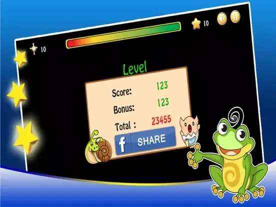 - Thống kê điểm từng level và tổng điểm , sharing facebook để đua top với bạn bè.
