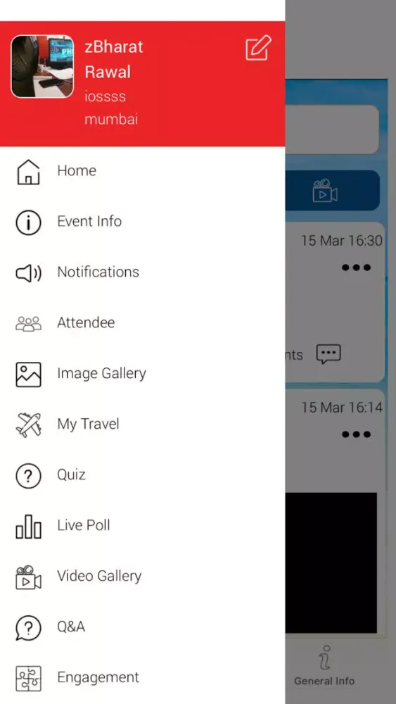 4. * Menu Slider – Choose from a wide variety of features to network with attendees