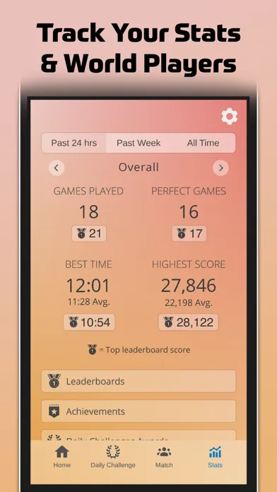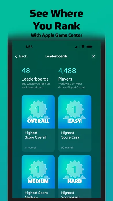 Track your solo play progress with easy to understand statistics and compare with world players through achievements and leaderboards. We developed new insightful visuals to view your progress and improvement statistics by viewing your own historical game progress, as well as comparing your achievements and stats with worldwide players on leaderboards through Apple Game Center. Play across multiple devices with cloud save.
