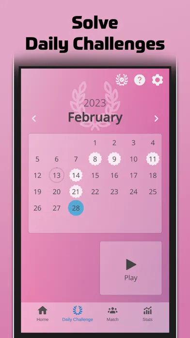 Improve your solving skills and speed by playing in a monthly tournament and being matched with sudoku players of a similar level. Track your wins and losses each month and increase your level over time as you play matches.