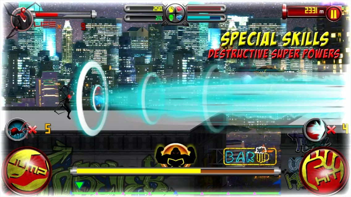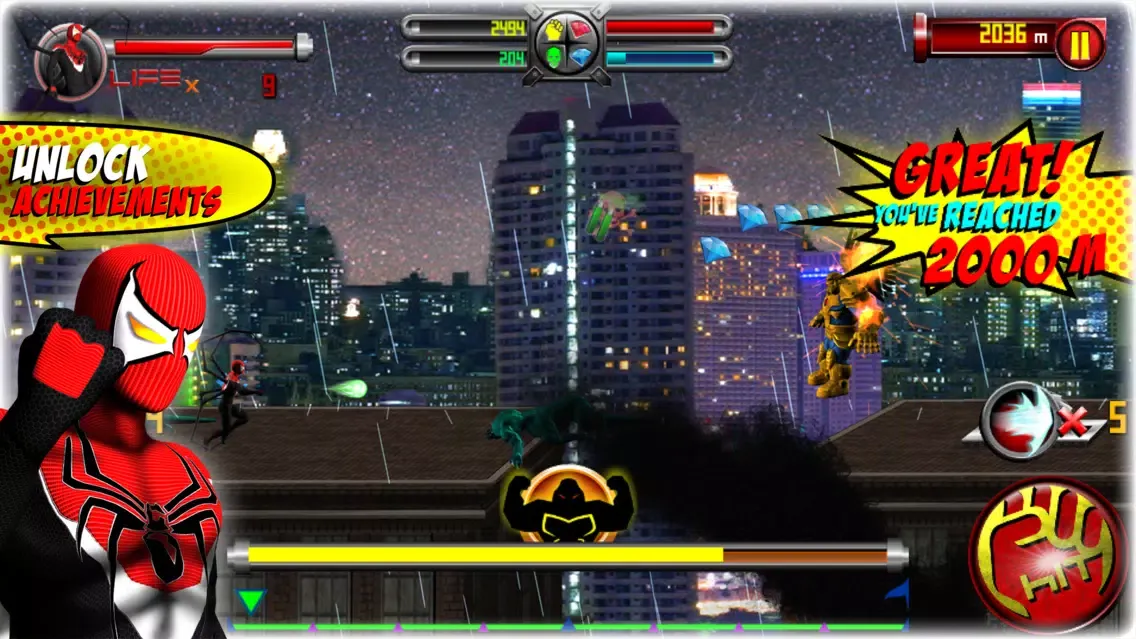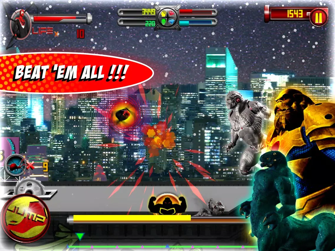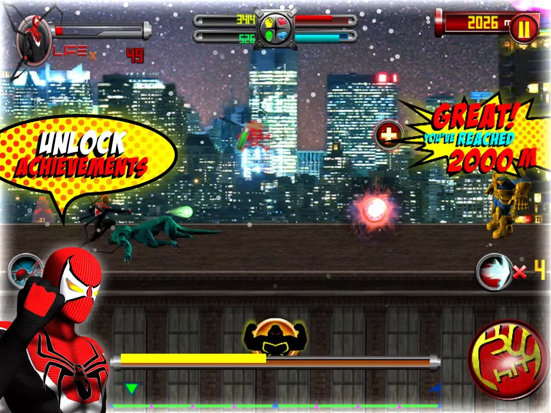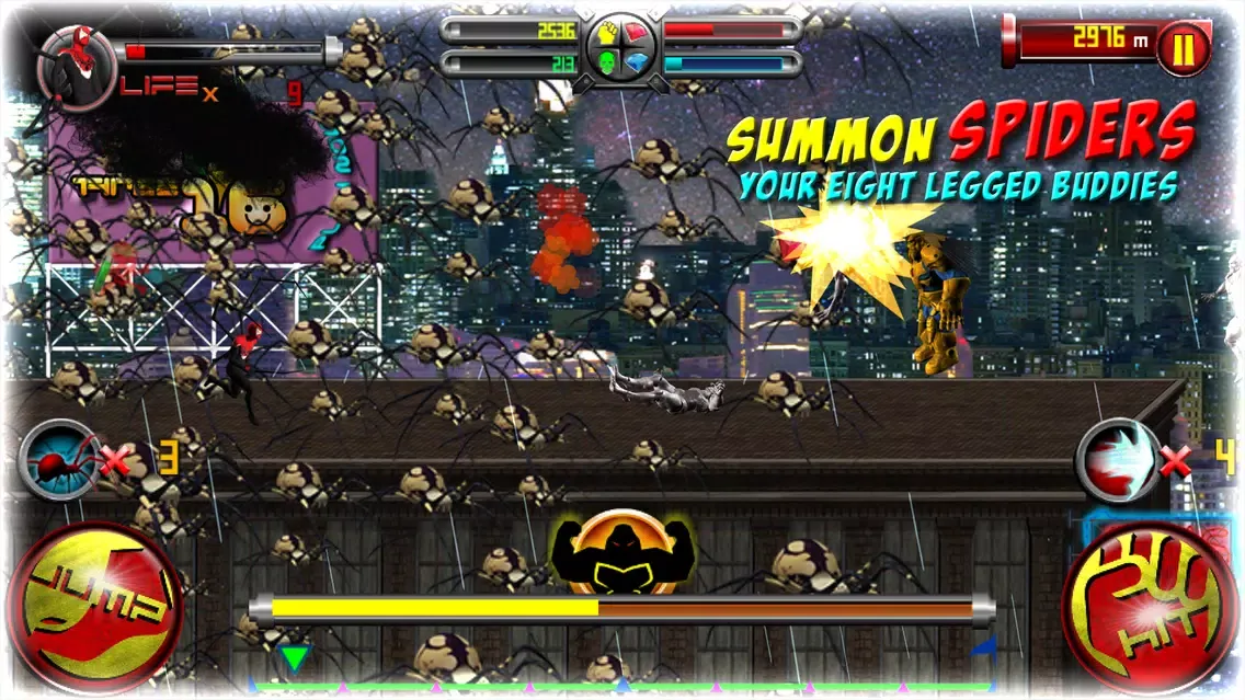 But when their city is suddenly invaded by monsters and robots, Awesome Arachno becomes their only hope! Play as Awesome Arachno and run to the furthest distance you can and help the people by beating monsters and their boss.