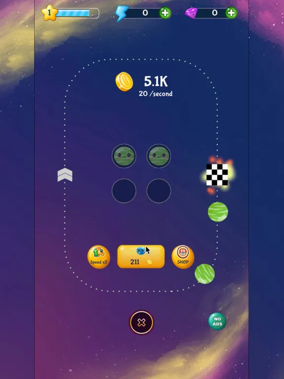 - Buy and Merge planets and upgrade them to the next level to speed up