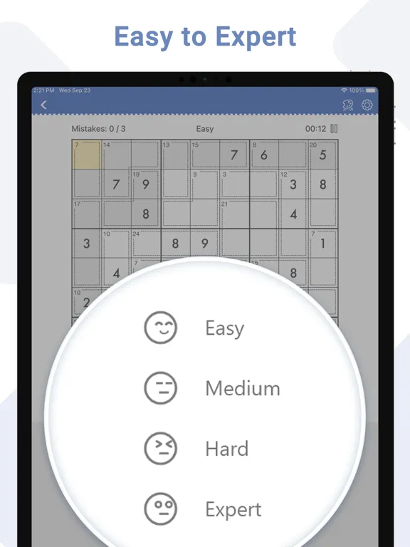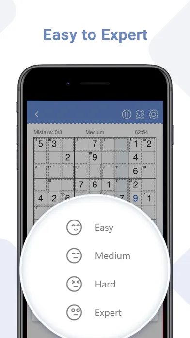 1. Sudoku puzzles come in 4 difficulty levels - easy Sudoku, medium Sudoku, hard Sudoku and expert Sudoku! Perfect for Sudoku beginners and advanced players!