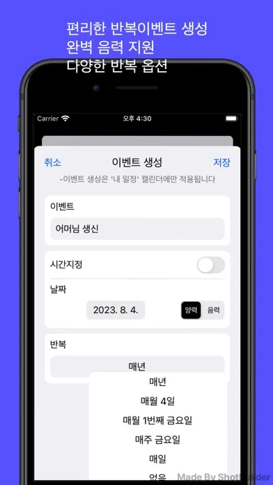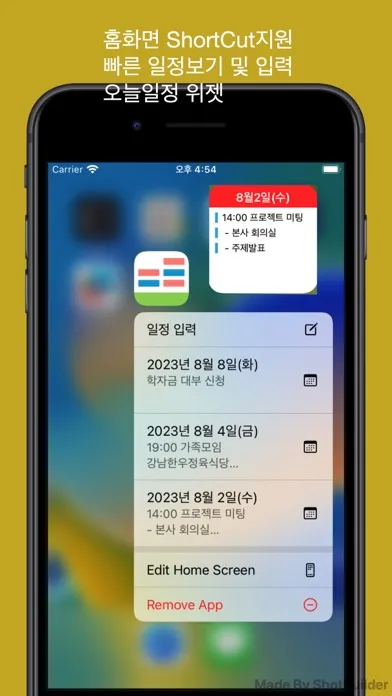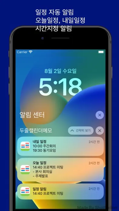 복잡한 알림설정 없이 오늘일정과 내일일정, 지정된 시간일정을 알림을 통해 알려줍니다