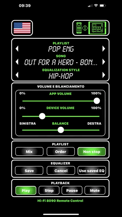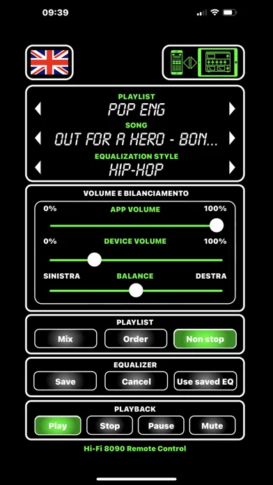 IMPORTANT: In order to use this App you need to click on the remote control activation icon on the Hi-Fi 8090 app, this will ask you to allow incoming connections, if you want to use the remote control this permission must be granted as the Hi-Fi 8090 app acts as a server for receiving commands from the remote control and sending playback data to the Hi-Fi 8090 Remote Control
