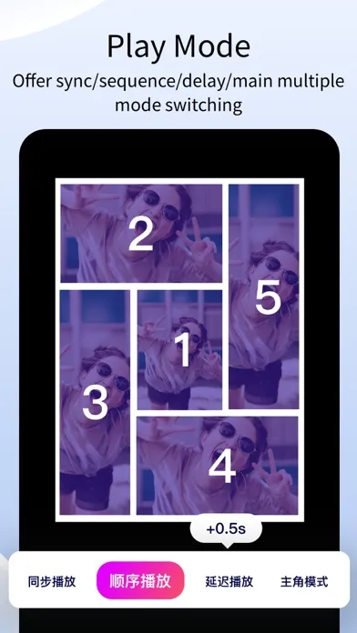 • Supports multiple playback mode switching (synchronous playback, sequential playback, delayed playback, protagonist mode)