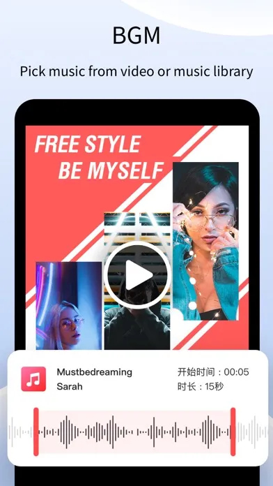 • Supports adding background music, extracting music from videos or selecting music from the music library