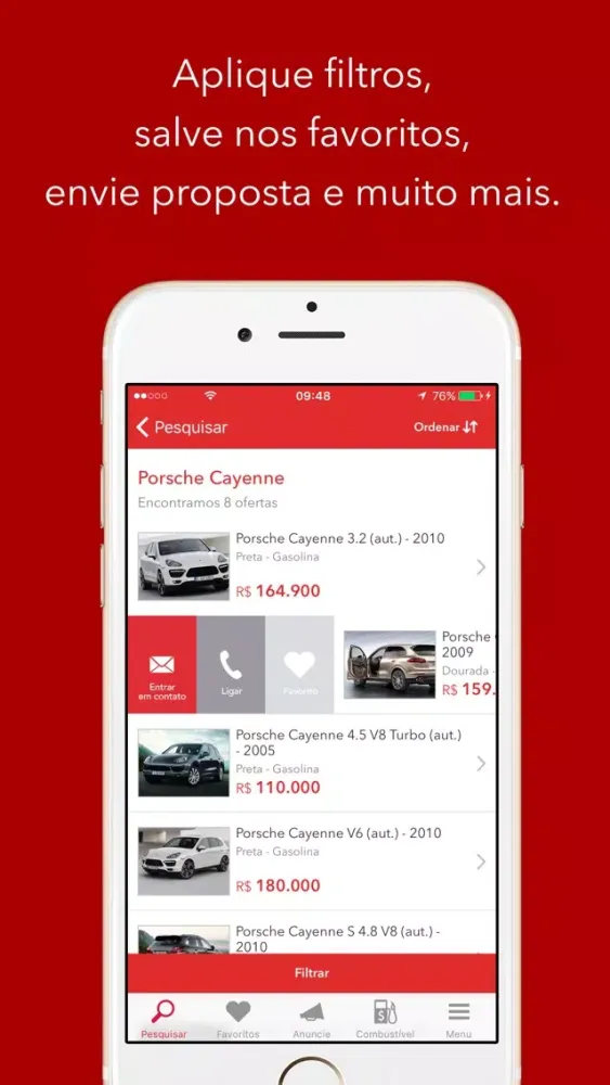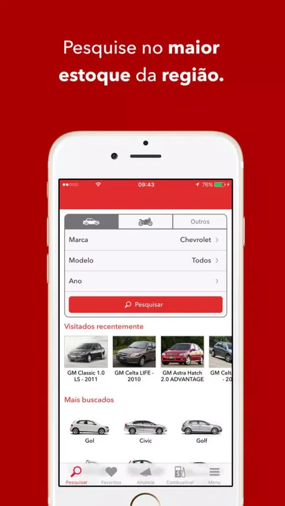 Favoritos - guarde os veículos que você mais gostou e consulte-os rapidamente quando quiser.